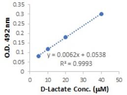 exhibits an absorption maximum at 492 nm. The D-Lactate Assay kit can measure the concentration of D-lactate present in serum or plasma with