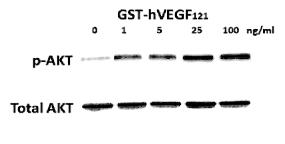 are mediated in part through the AKT signaling transduction pathway. In humans, alternative splicing from the single VEGF-A gene gives rise to
